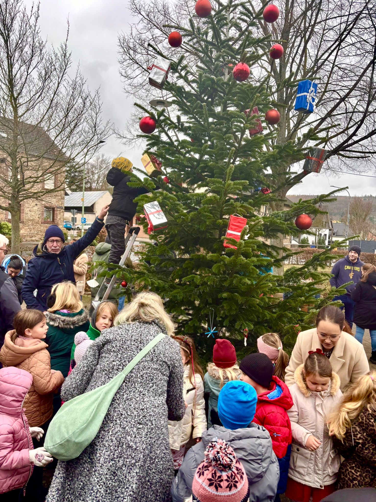 Heute Morgen haben die Vorschulkinder aus der Kita „Eifelzwerge“ den großen Weihnachtsbaum am Brunnen geschmückt! Dank der Initiative von „Aktiv für Gey“ strahlt unser Dorfmittelpunkt nun mit der großen Krippe und dem Adventskranz auf der Brunnenspitze in weihnachtlicher Atmosphäre. Der Förderverein des Kindergartens bot Kakao und Glühwein an, die Dorfgemeinschaft bedankte sich bei den Kindern mit einem Weckmann. Eine schöne Tradition in Gey zum 1. Advent.
