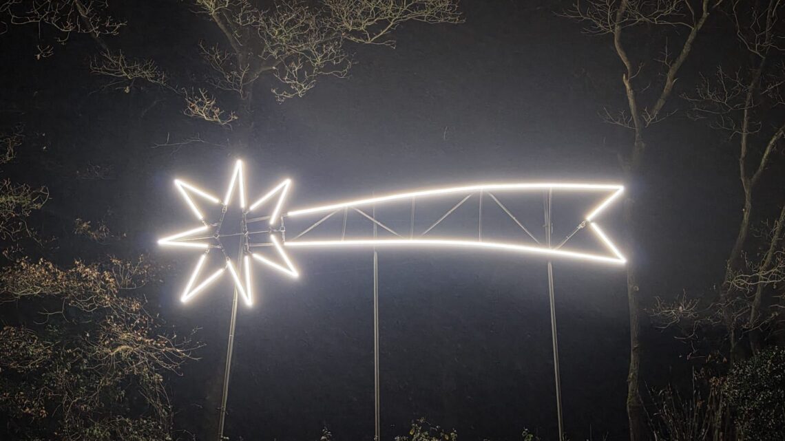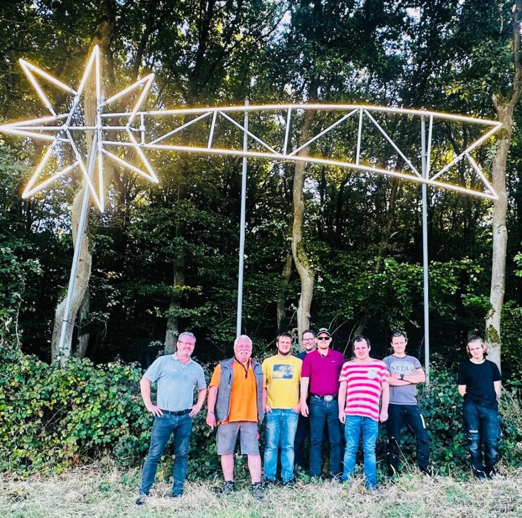 Seit gestern leuchtet der Stern von Gey wieder: Der CDU-Ortsverband Gey-Straß kümmert sich traditionell um den Stern und freut sich über die erfolgreiche Wiederinbetriebnahme des weithin sichtbaren Weihnachtssymbols. Mit vereinten Kräften wurde im Sommer ein neuer LED-Schlauch eingezogen, unterstützt durch die tatkräftige Hilfe von Stefan Cremer und Michael Stick. Auch einige Helfer der Freiwilligen Feuerwehr aus Straß beteiligten sich engagiert am Aufbau. Der Stern wird – wie jedes Jahr – bis Maria Lichtmess erstrahlen und für eine festliche Stimmung im Ort sorgen.