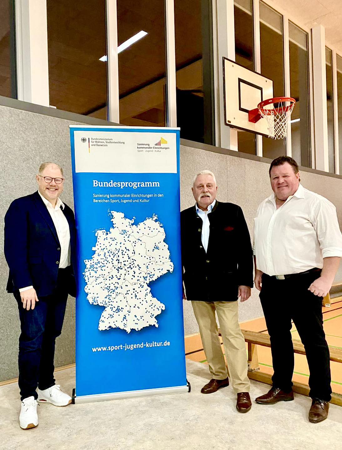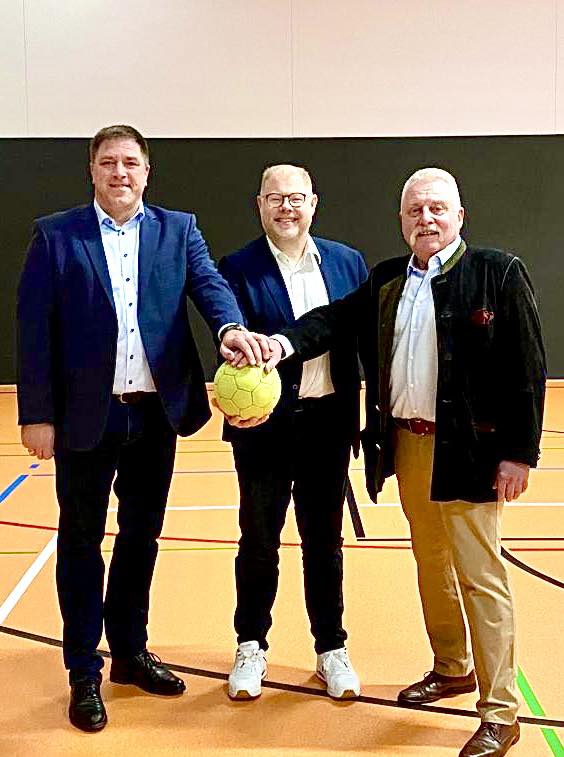 Bürgermeister Stephan Cranen zeigte die Historie von der Antragstellung im Jahr 2018 bis heute dar. Ortsvorsteher Paul Bolz unterstrich in seinem Grußwort die Wichtigkeit der Halle für den Schul- und Vereinssport und das Geyer Dorfleben.