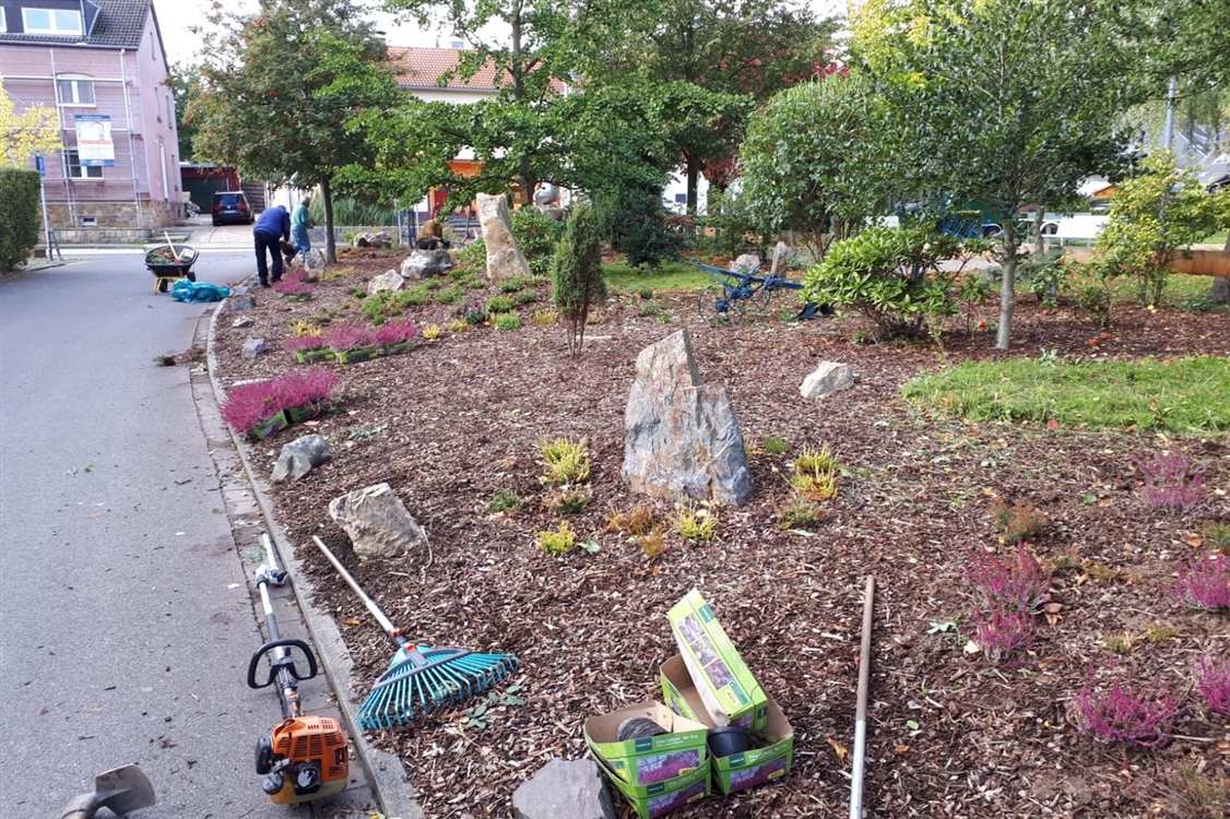 Große Unterstützung erhält „Aktiv für Gey“ durch den Bauhof der Gemeinde Hürtgenwald, der besonders bei der Planung und der Pflanzenauswahl für den Heidegarten und der Blumenwiese unterstützt hat.