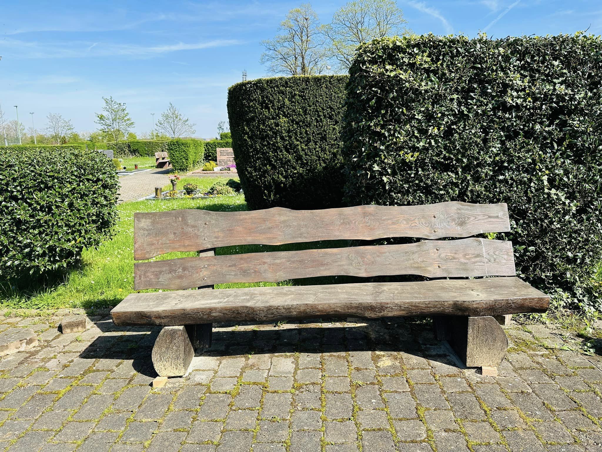 Neue schöne Bank im Eingangsbereich des alten Friedhofs